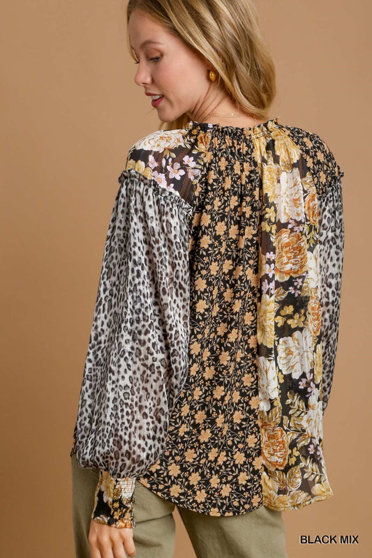 Floral and Animal Print Top ~SALE $31.20~