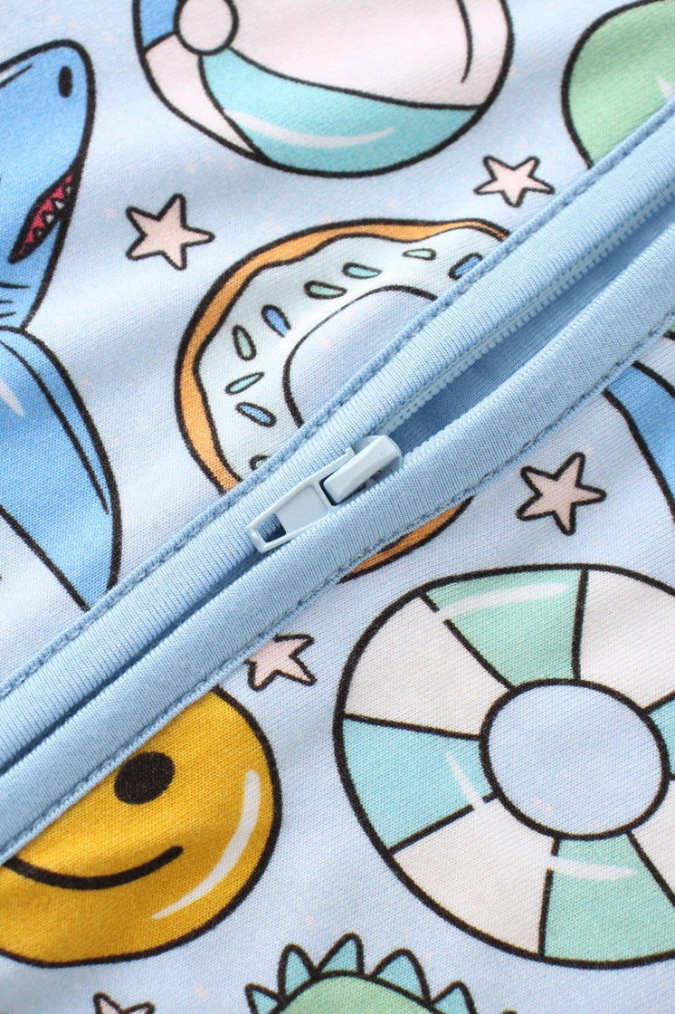 A convertible romper with a two-way zipper, fold over foot cuffs (on all sizes) and fold over hand cuffs (up to 12-18M). Made of 95% bamboo, 5% spandex.