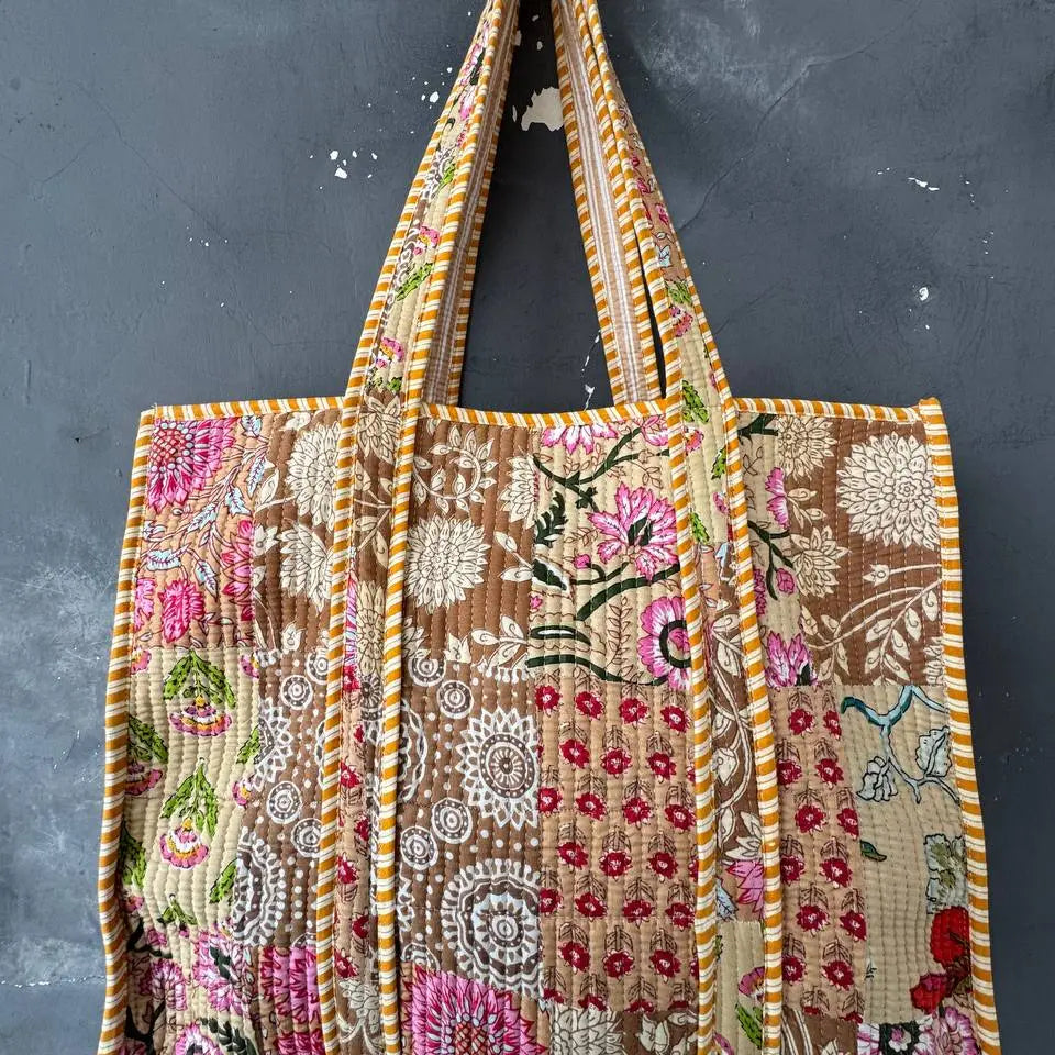 a 100% cotton oversized quilted tote reversible tote bag with contrasting interior. Check out the matching duffle bags, cosmetic bags and toiletry bags to complete your set!